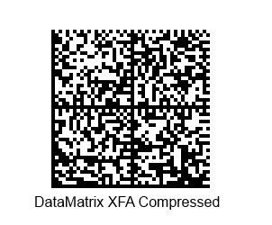 The "XFA Compressed DataMatrix" barcode is a DataMatrix barcode that stores data compressed according to the Adobe XFA specification.