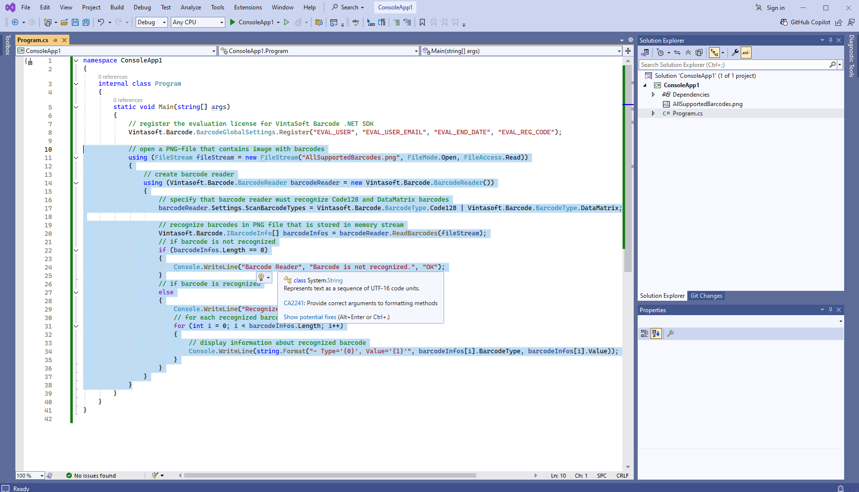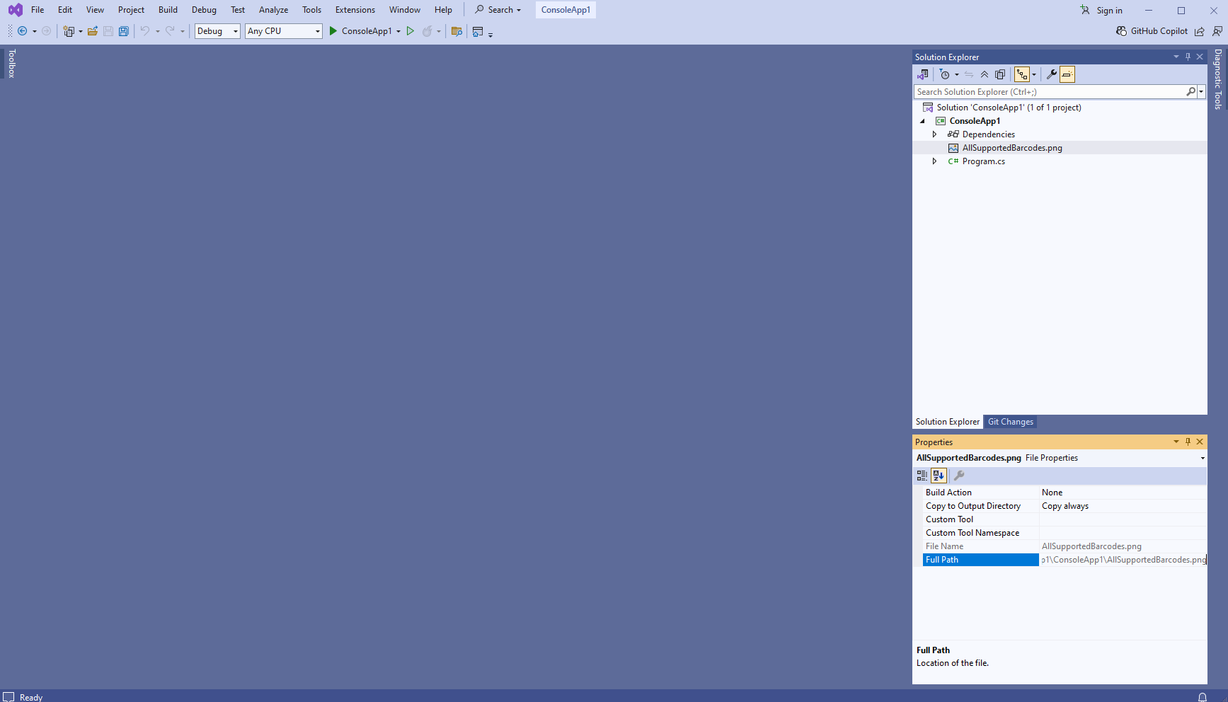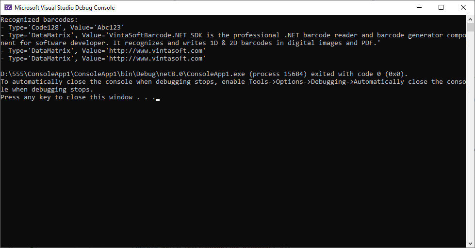 This tutorial shows how to create a blank console .NET application in Visual Studio .NET 2022 and recognize barcodes in image in console .NET application.