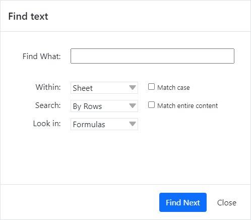 Here is screenshot of "standard" "Find text" dialog, which is based on Bootstrap: