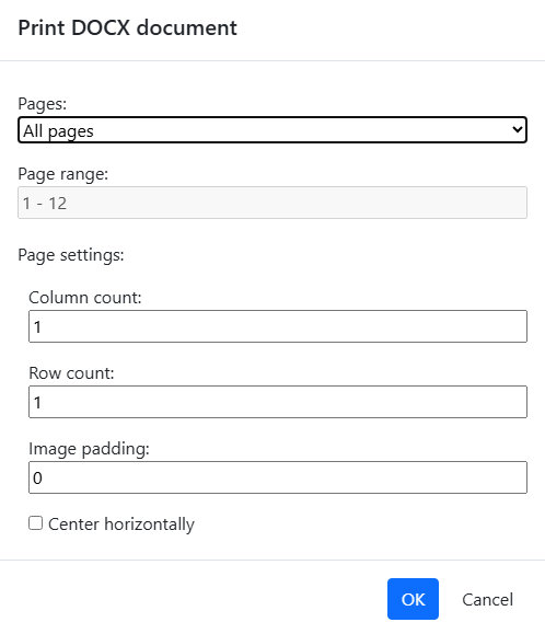 WebUiPrintDocxDocumentSettingsDialogJS class represents an UI-dialog that can be used in