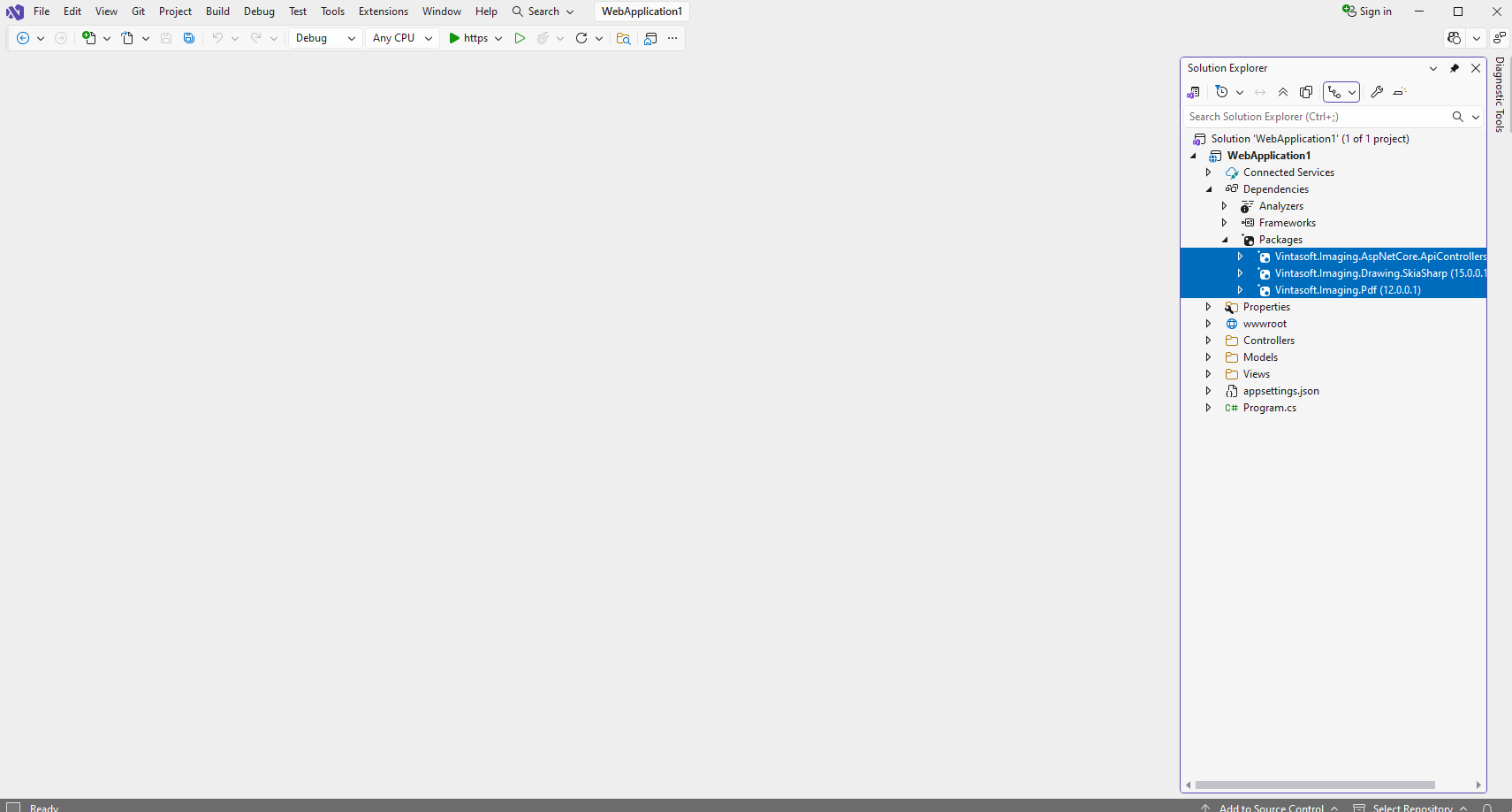 Add references to the nuget-packages "Vintasoft.Imaging.AspNetCore.ApiControllers", "Vintasoft.Imaging.Annotation.Pdf" to the ASP.NET Core application. Other necessary nuget-packages will be added automatically.