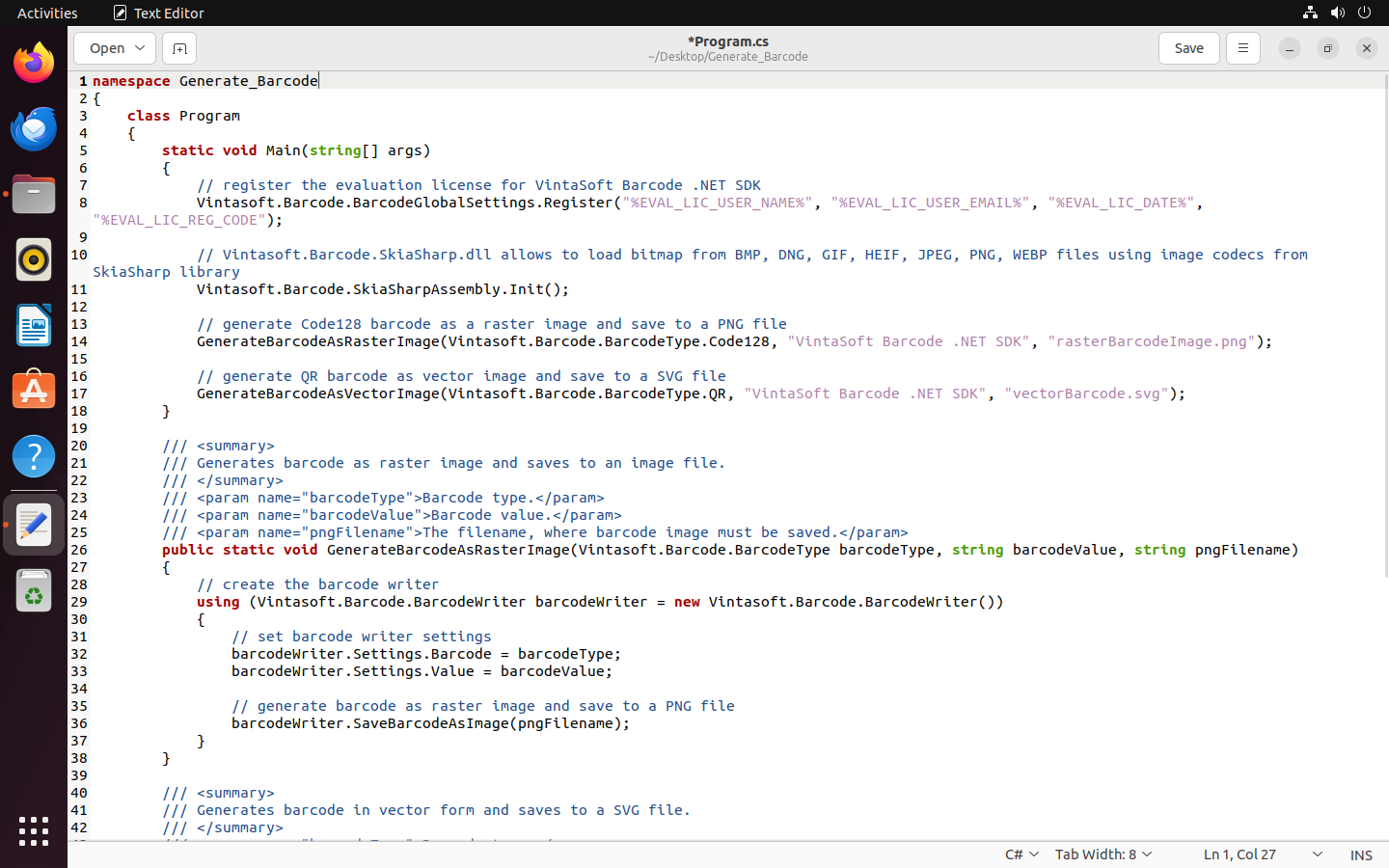 Գեներացնել շտրիխ կոդ Linux-ում՝ օգտագործելով .NET ծրագիրը