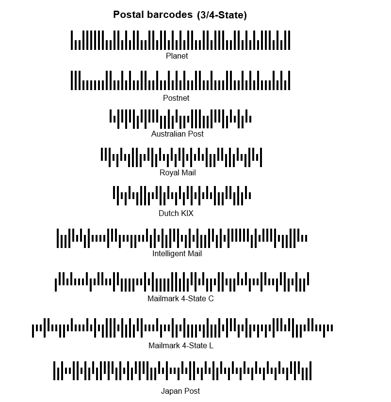 Questa è una classe speciale di codici a barre, in cui ogni barra ha uno dei quattro stati di altezza e posizione rispetto alla linea di base. I codici a barre di questo set di codici a barre sono utilizzati dai principali corrieri postali negli Stati Uniti, nel Regno Unito, in Australia, in Giappone e in altri paesi. Questi codici a barre in genere contengono l'identificativo del mittente, il tipo di servizio, il numero univoco dell'articolo e le informazioni di instradamento, pur rimanendo relativamente compatti.