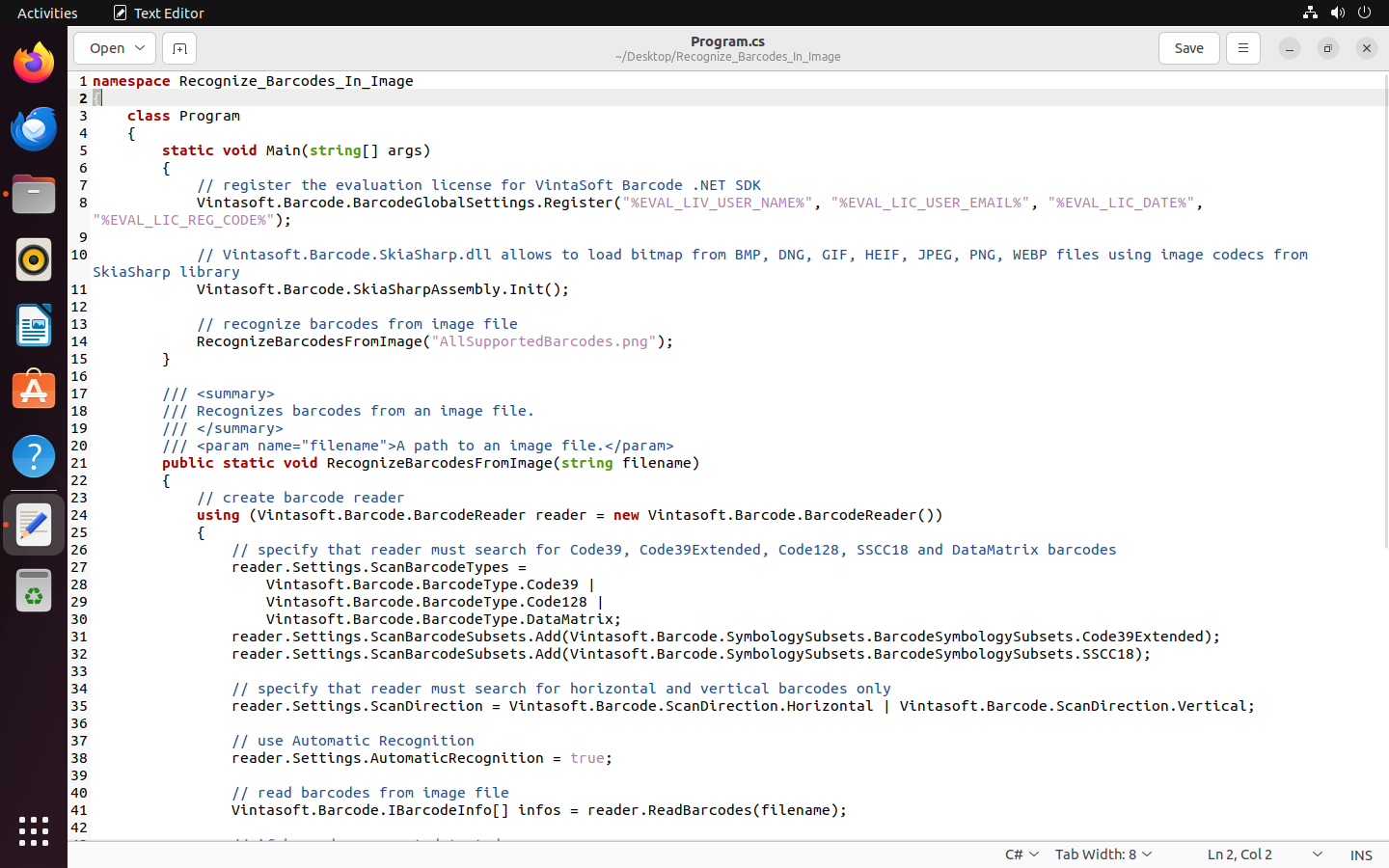 .NET アプリケーションを使用して Linux でイメージ内のバーコードを認識する