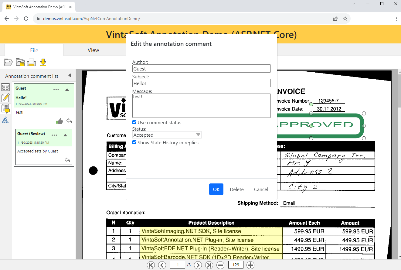 O quarto novo recurso importante desta versão é a capacidade de adicionar comentários às anotações no visualizador de documentos da web.
