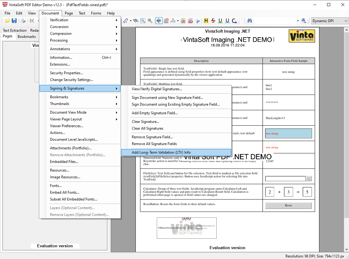 Agora também é possível incorporar informações para validação de longo prazo (LTV) de uma assinatura digital em um documento PDF.