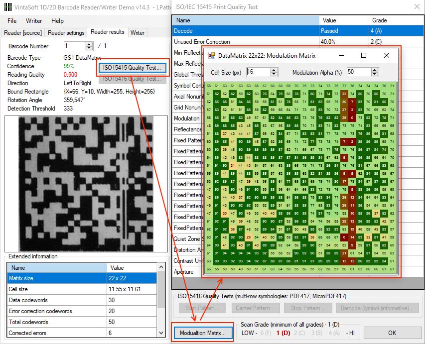 ISO15415QualityTest.ModulationMatrix 属性获取调制矩阵的功能。