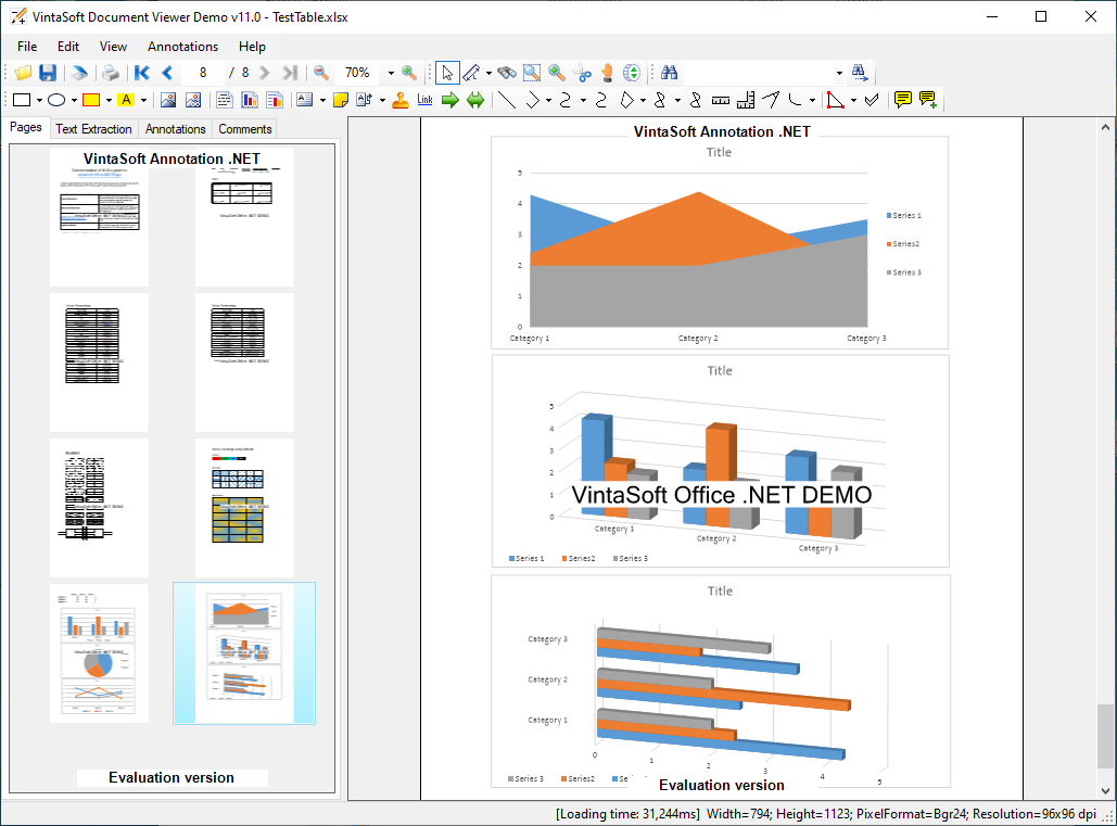 以下是 VintaSoft 文档查看器演示的屏幕截图,这演示了如何在图像查看器中显示 XLSX 图表: